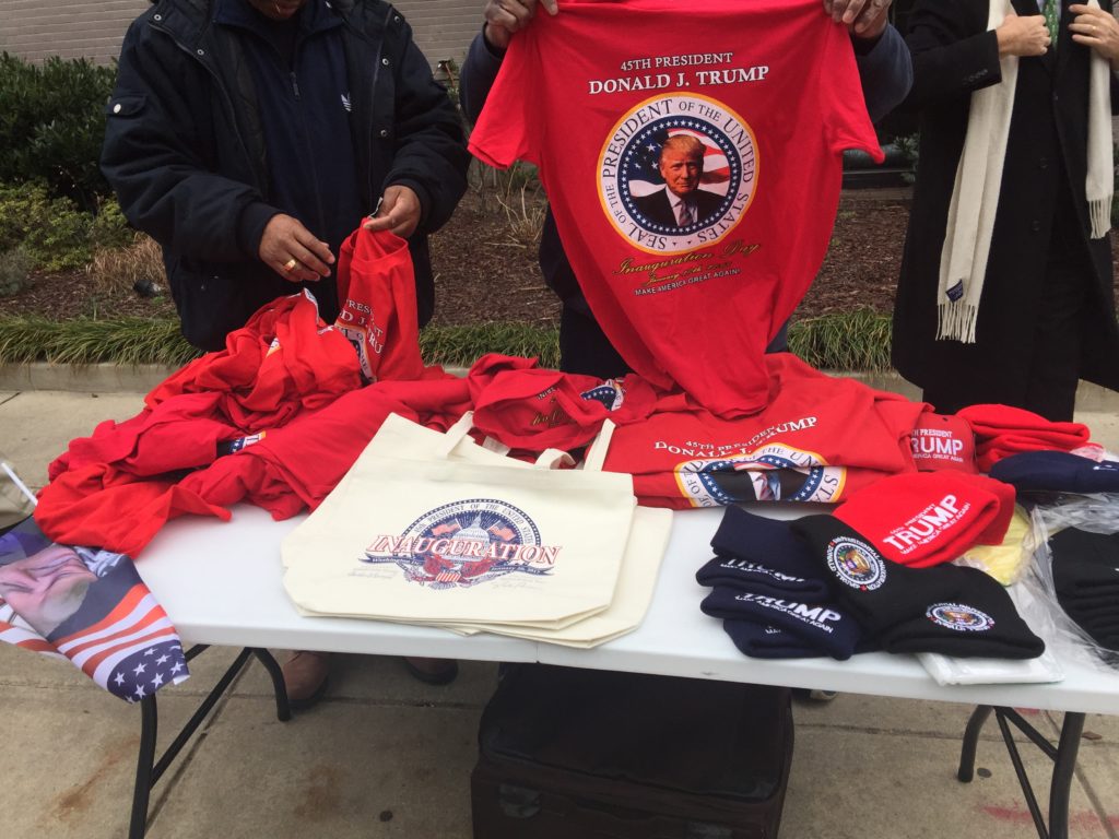The weather was dreary and with light showers that proceeded on and off the entire time. On the way to the ceremony, several stands were selling Trump T-shirts.