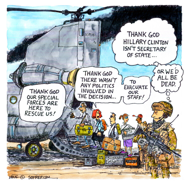 Due to the valiant efforts of US special operations forces, all of our embassy personnel were evacuated from our facility in Sudan. In Benghazi, thanks to bureaucratic interference, they were not so lucky.