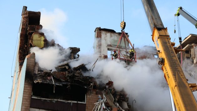 Nearly 100 people were injured as residential buildings were destroyed, leaving entire apartment blocks gutted by fire. Emergency crews continued searching through rubble for survivors.