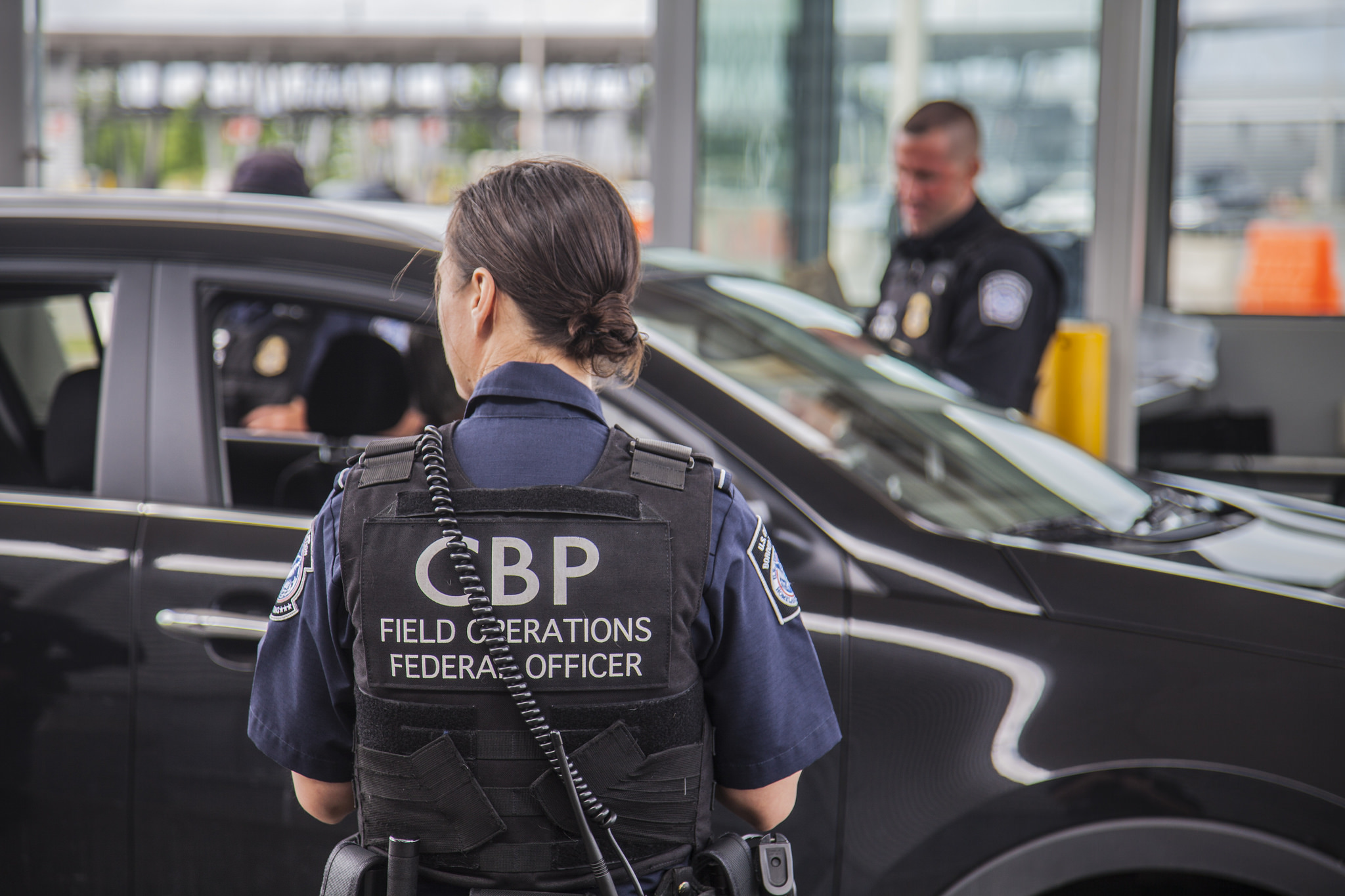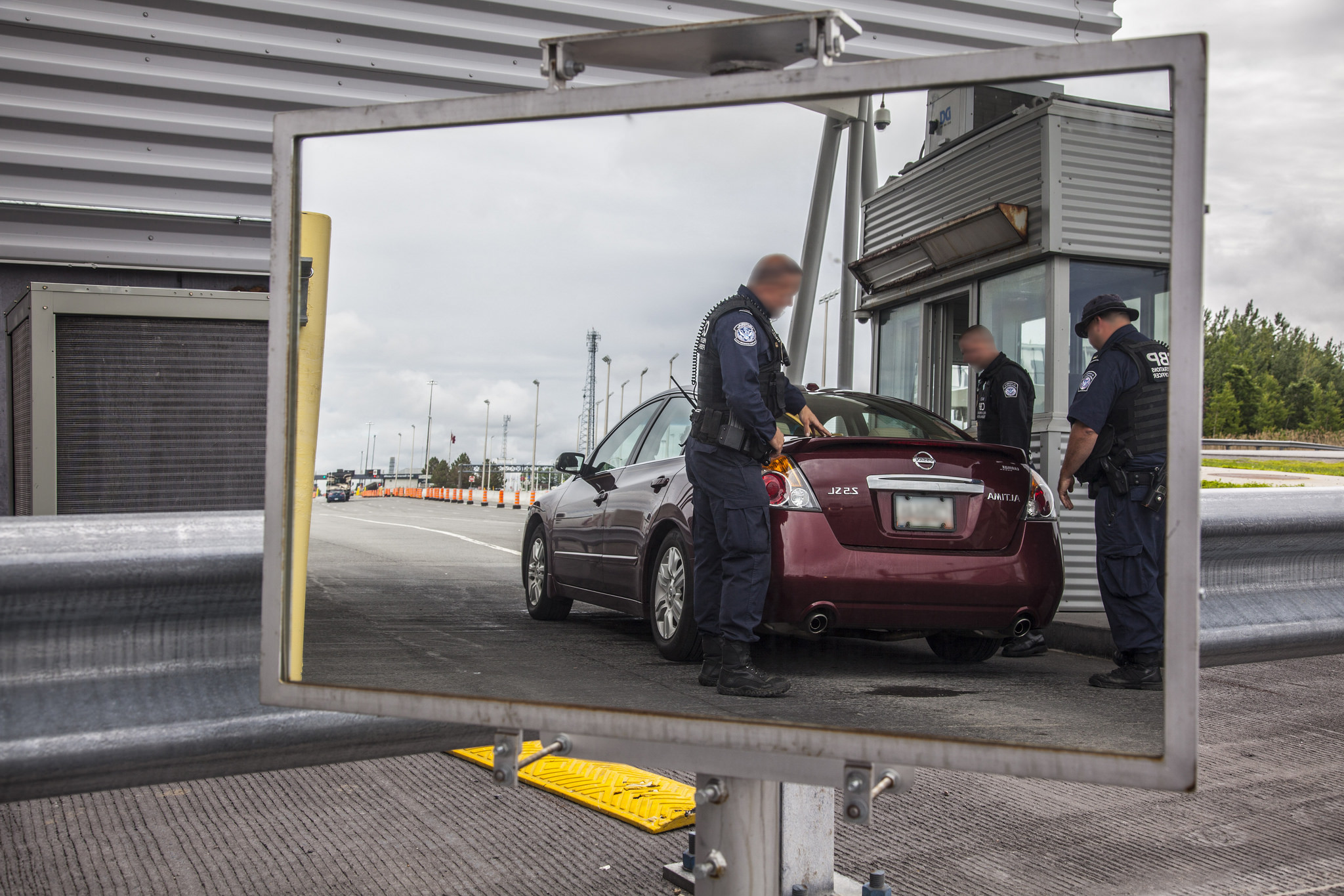 A CBP officer looks on at the 100 percent outbound inspection taking place at the Area Port of Champlain on June 15. Photographer: Kristoffer Grogan.