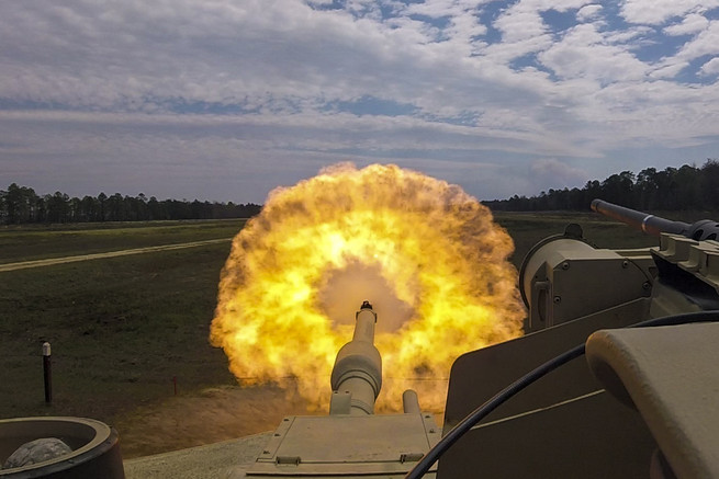 An Army M1A1 SA Abrams tank fires at a target during unit gunnery training at Fort Stewart, Ga., March 29, 2018. Soldiers assigned to the 6th Squadron, 8th Cavalry Regiment conducted the training. Image courtesy of the U.S. Army See the M1 Abrams in action in the video below: