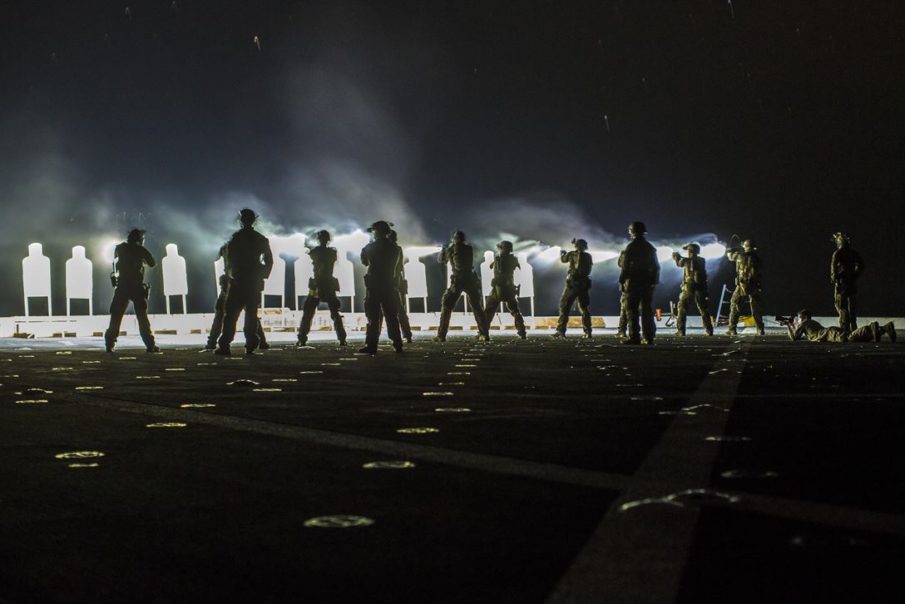Marines conduct a deck shoot at night during Western Pacific Deployment 16 aboard the USS New Orleans in the Pacific Ocean, April 1, 2016. The Marines are assigned to the Maritime Raid Force, 13th Marine Expeditionary Unit. Marine Corps photo by Sgt. Hector de Jesus Watch U.S. Marines conducting a deck shoot in the video […]
