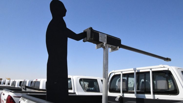 Today’s Pic of the Day features a silhouette figure mounted on the back of a white Toyota truck, often associated with terrorist groups, but here repurposed as a tool for anti-terrorism training.