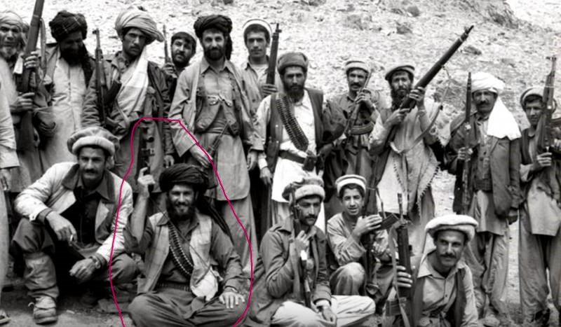 That said, here’s a pic I dug up of some Mujahadeen, one (circled) with an MP5K. God knows where he obtained that.