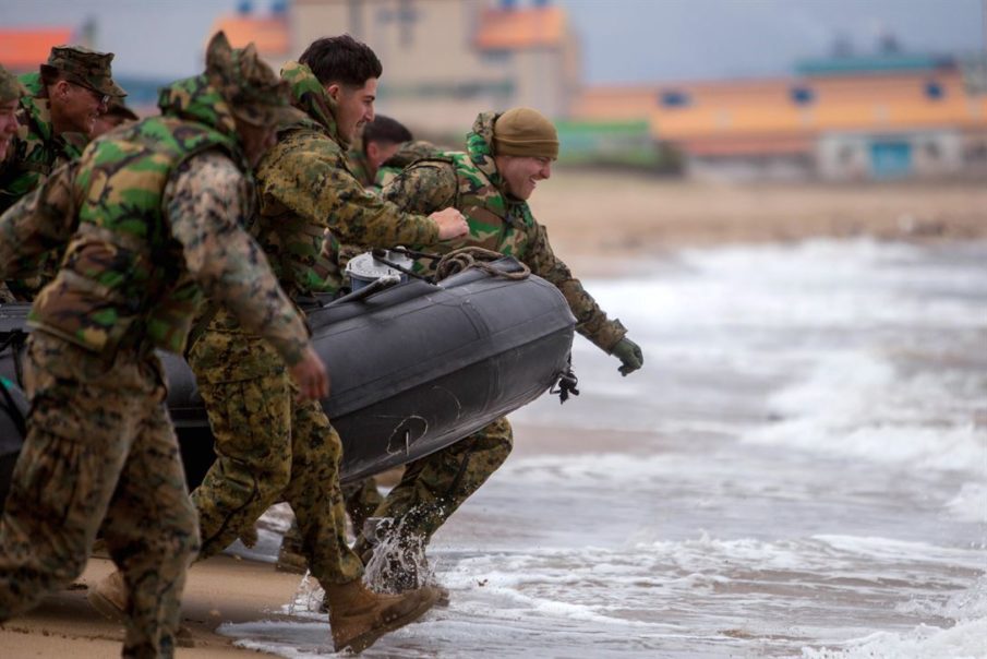 U.S. and South Korean Marines carry an inflatable boat into the water during training as a part of the Korean Marine Exchange Program in South Korea, April 4, 2016. The exchange is designed to increase interoperability and reinforce the alliance between the United States and South Korea. The U.S. Marines are assigned to 1st Battalion, […]