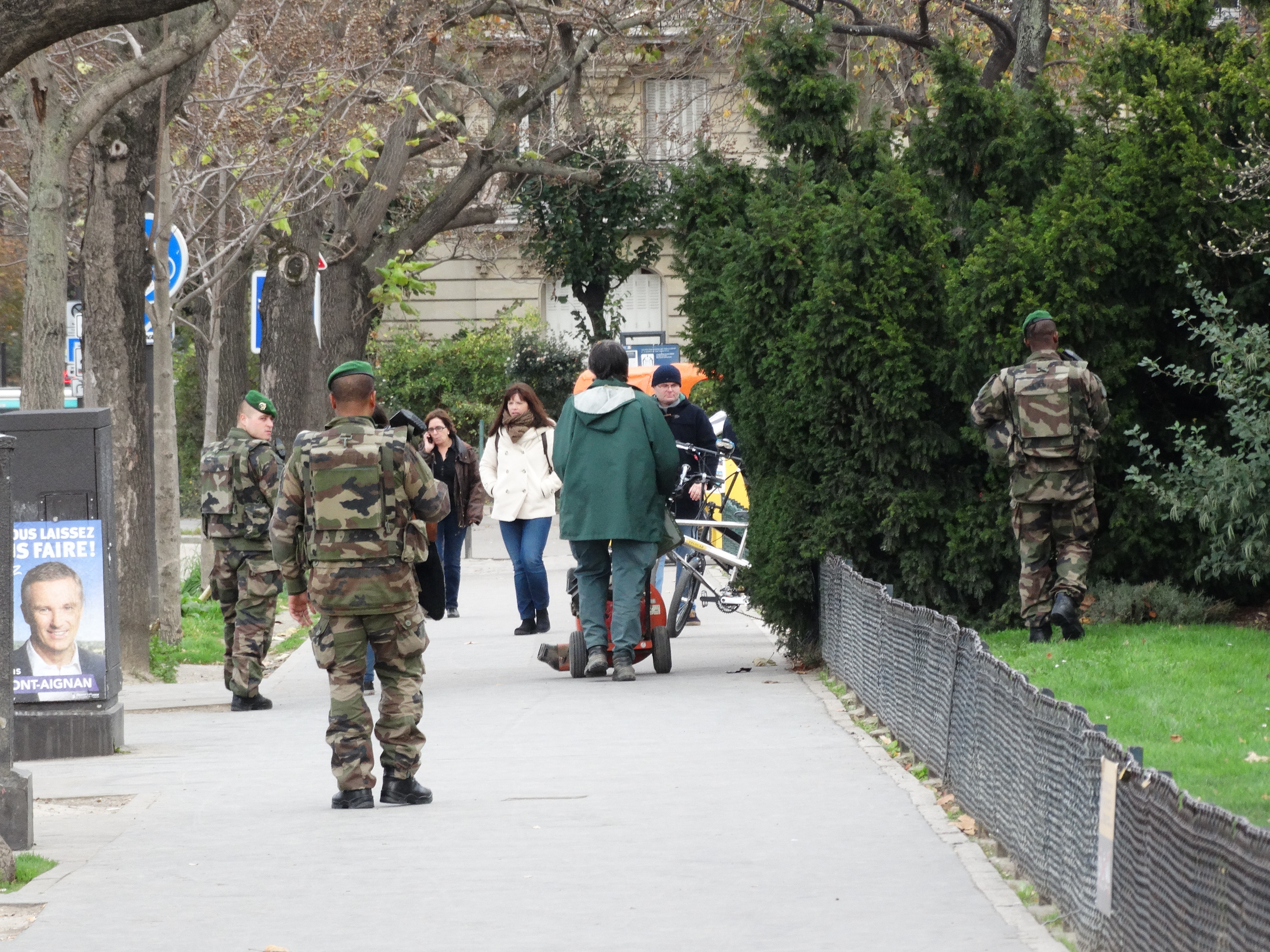 I head on out to the centre during the day to see if the city is up and running again. It not long before I realize that the city is far from normal. As I drive down the streets there are police on every corner. They are armed and wearing body amour ready to do the business. It seems like every couple of hundred meters in the city centre they are there and waiting. Not just cops though, at some of the main attractions the French Foreign Legion is in place too. If France was showing the world one thing its showing them that we can and will protect our city, putting on a show of force in Paris. The place is on lockdown with police everywhere standing, guarding, patrolling, I mean foot patrols, vehicle patrols, horse mounted patrols, static positions, the full Monty. Some of the main attractions are still closed with the threat level still high. I spoke with a few people on my journeys today most were happy, some were worried, but the one thing that came up a more than anything was, “its too much, we must stop these terrorist scum and put a stop to this. France can not and will not go on like this, it’s too much”