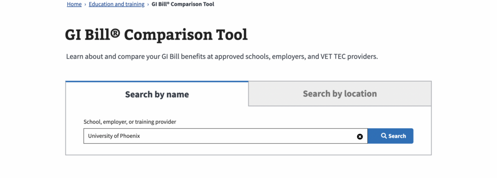 Another incredibly useful tool is the GI Bill Comparison Tool. It provides information about the following: