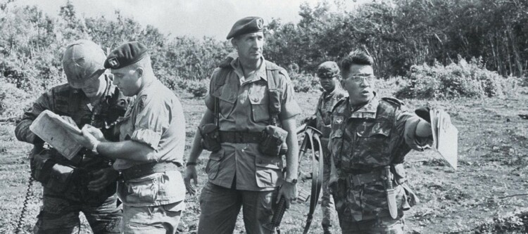 Here we see Colonel James Lilland (center) working in the field with indigenous Vietnamese troops. October 1st, 1969