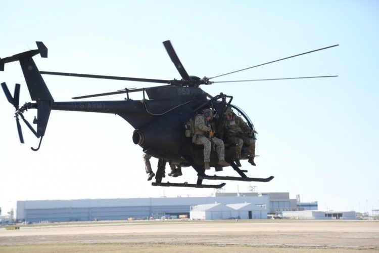MH-6 Little Birds and MH-60 Black Hawks helicopters buzzed downtown Los Angeles this week as a part of a Joint Special Operations Command (JSOC) training exercise. Spectators observed the helicopters landing operators on building rooftops, then later setting down to pick them up at street level. Presumably, the training scenario involved the operators assaulting from the top down to their target somewhere in a building, then exfiltrating to the street.