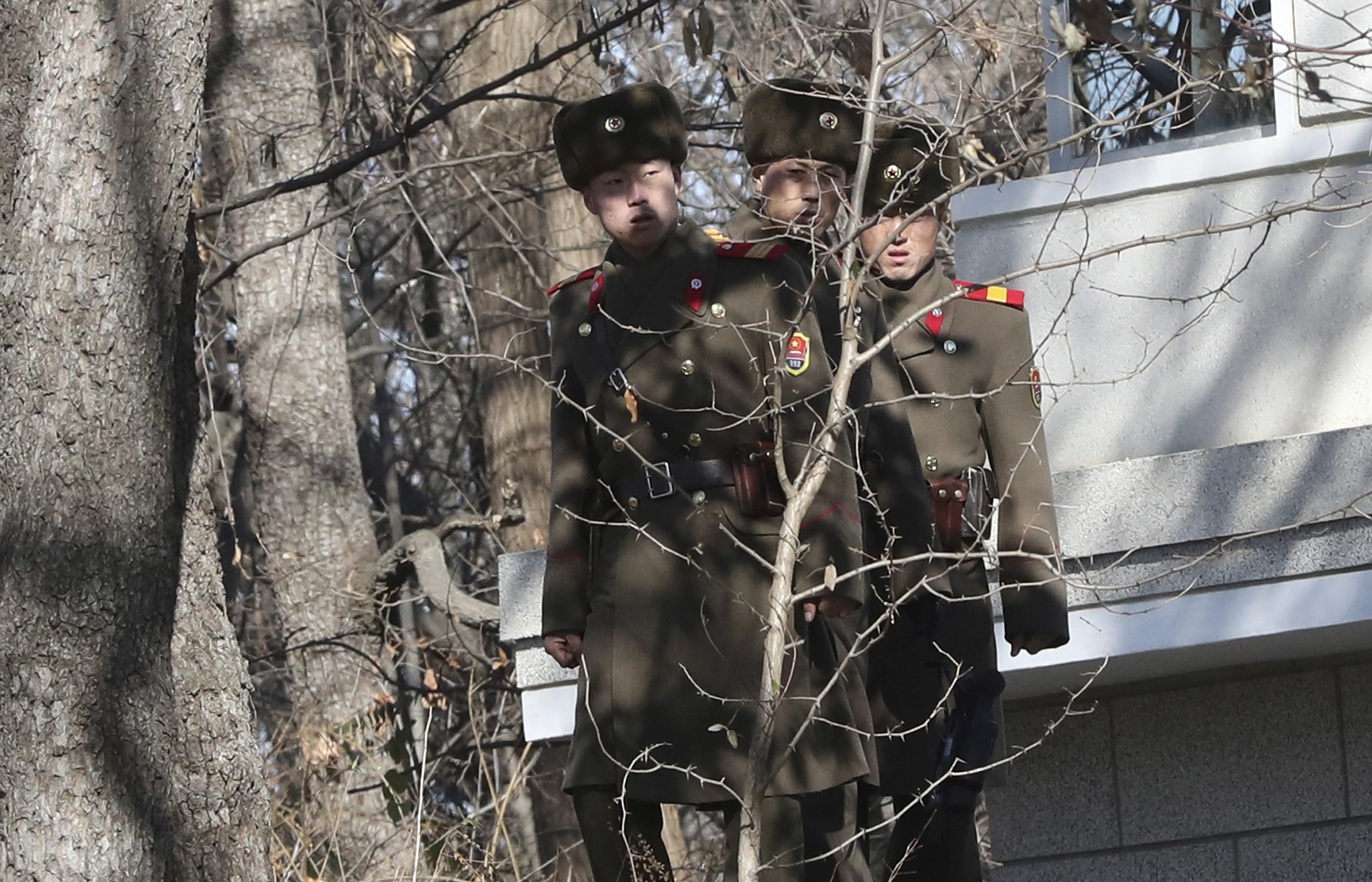 North Korean soldiers look on as South Korea’s Minister of Defense Song Young-moo speaks.