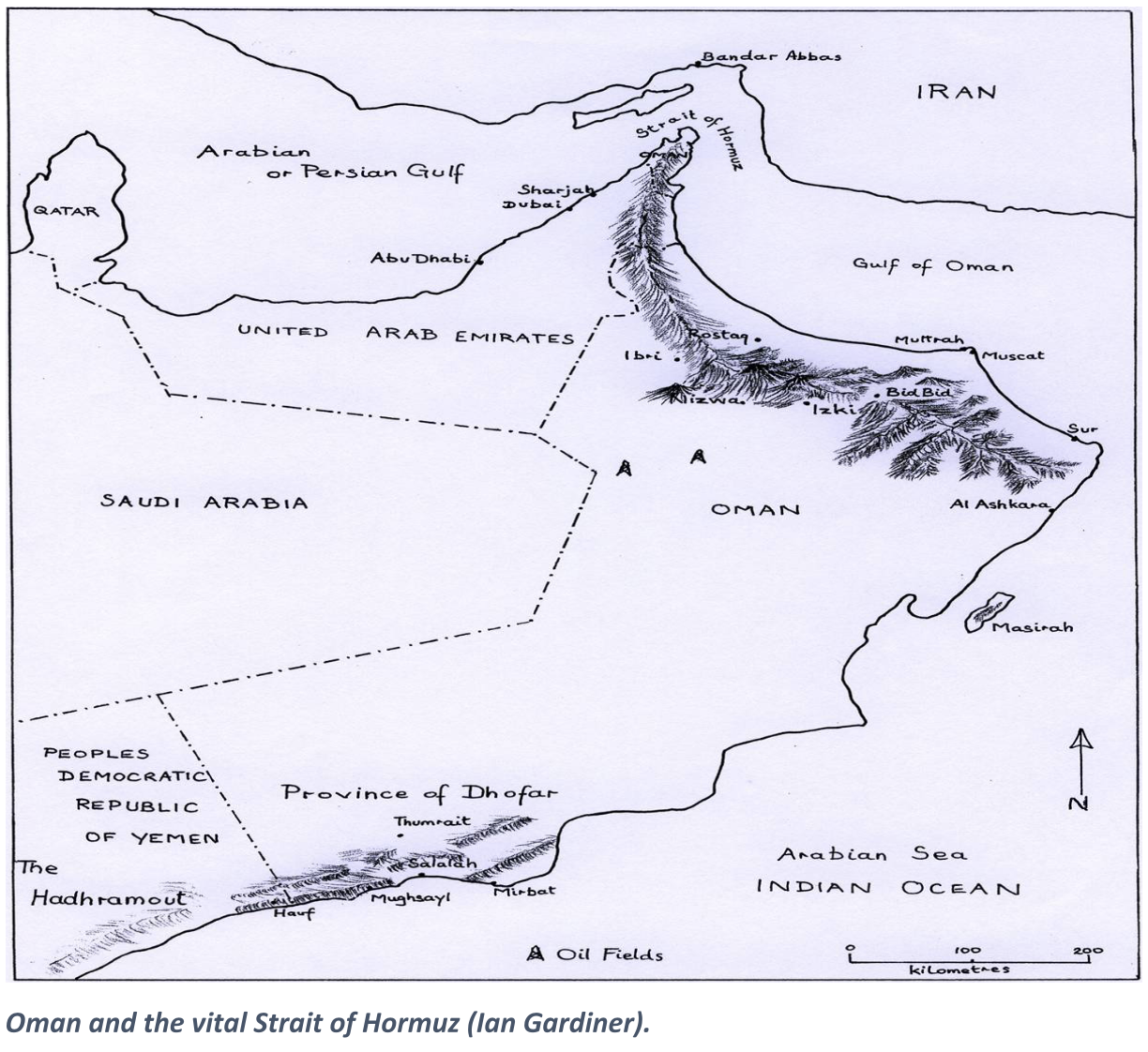 Whereas a terror of falling dominos provoked America’s spirited commitment in Southeast Asia, the safety of the Strait of Hormuz, the oil lifeline of the Western economy, triggered that of Britain in Oman. Indeed, the deserts, mountains, and scrub of Oman were a Cold War battlefield of no less significance than the hills of Korea, the jungles Vietnam, or the bush of Sub-Saharan Africa. The fight for material and ideological gains between East and West was bitter and prolonged.