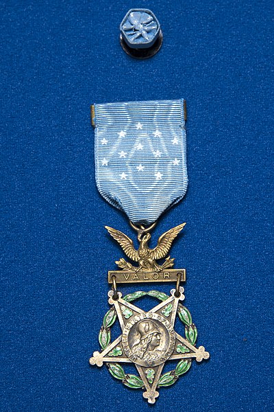 WWI pilot Lt. Frank Luke Jr. Medal of Honor on display in the Early Years Gallery at the National Museum of the US Air Force. (LaRock, Ken (US Air Force photo), Public domain, via Wikimedia Commons)