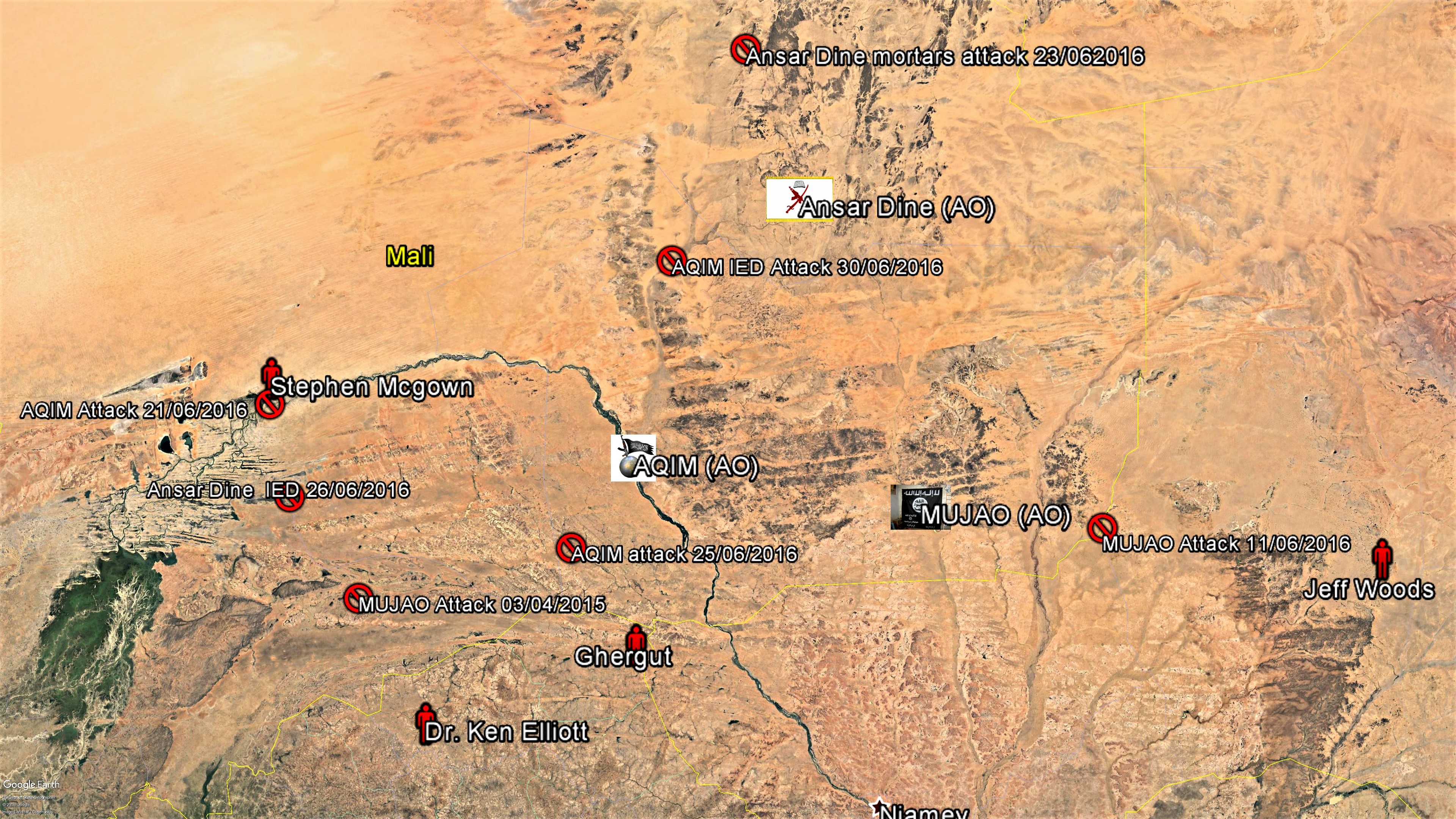 AQIM has no place in Niger, and MUJAO/Al-Murabitoun have a stronghold in the town of Menaka, located just 160 kilometers from the Niger border. I personally think AQIM has Dr. Ken Elliot, but I do think they use or have used MUJAO/Al-Murabitoun to smuggle them around. It would not surprise me if the latter did not conduct the kidnapping; Djibo was well within the reach of this group.