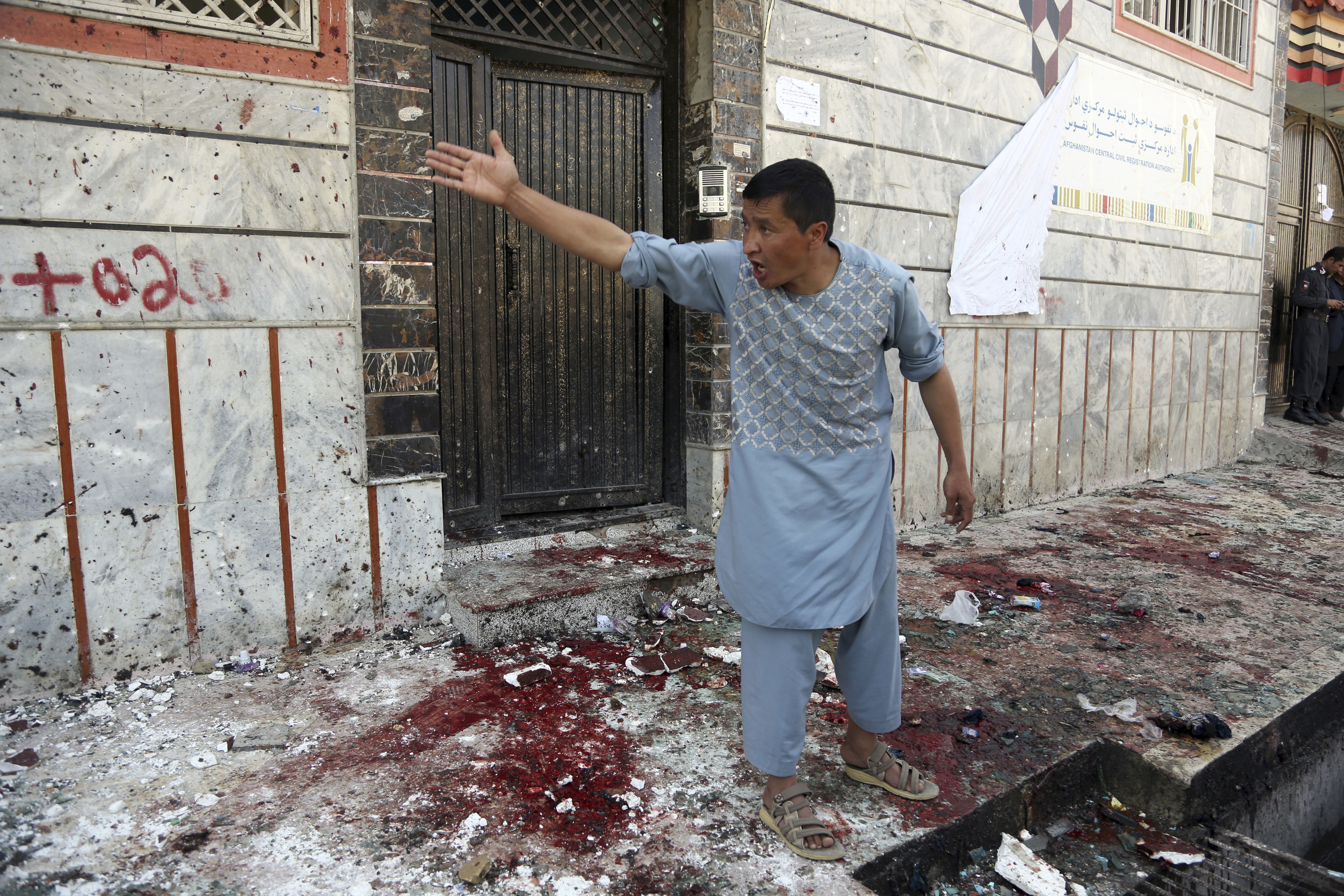 Featured image: A relative of a victim cries outside a voter registration center which was attacked by a suicide bomber in Kabul, Afghanistan, Sunday, April 22, 2018. Gen. Daud Amin, the Kabul police chief, said the suicide bomber targeted civilians who had gathered to receive national identification cards. (AP Photo/ Rahmat Gul)
