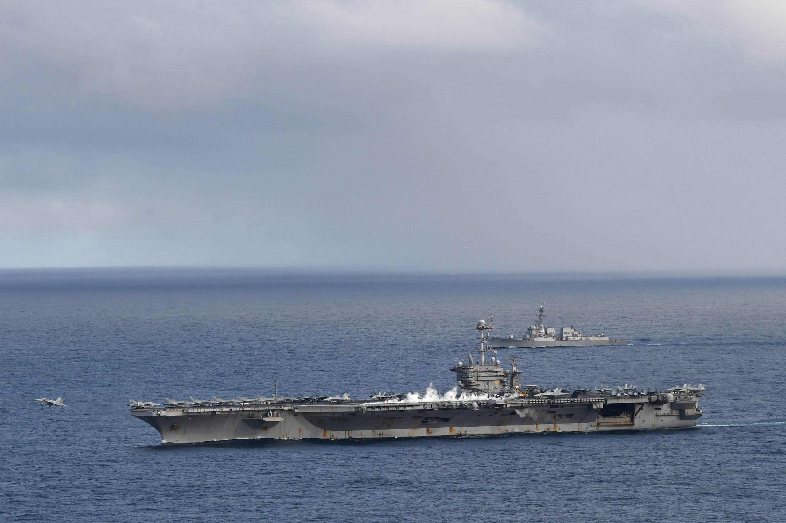 180918-N-EA818-0374 NORTH ATLANTIC (Sept. 18, 2018) An F/A-18 Super Hornet assigned to Carrier Air Wing (CVW) 1 launched from the Nimitz-class aircraft carrier USS Harry S. Truman (CVN 75) in the North Atlantic, Sept. 18, 2018. The Harry S. Truman Carrier Strike Group is deployed to the US 6th Fleet area of operations, demonstrating a commitment to regional allies and partners, combat power, and the flexibility of US naval forces to operate wherever and whenever the nation requires. (DVIDS/U.S. Navy photo by Mass Communication Specialist 2nd Class Thomas Gooley/Released)