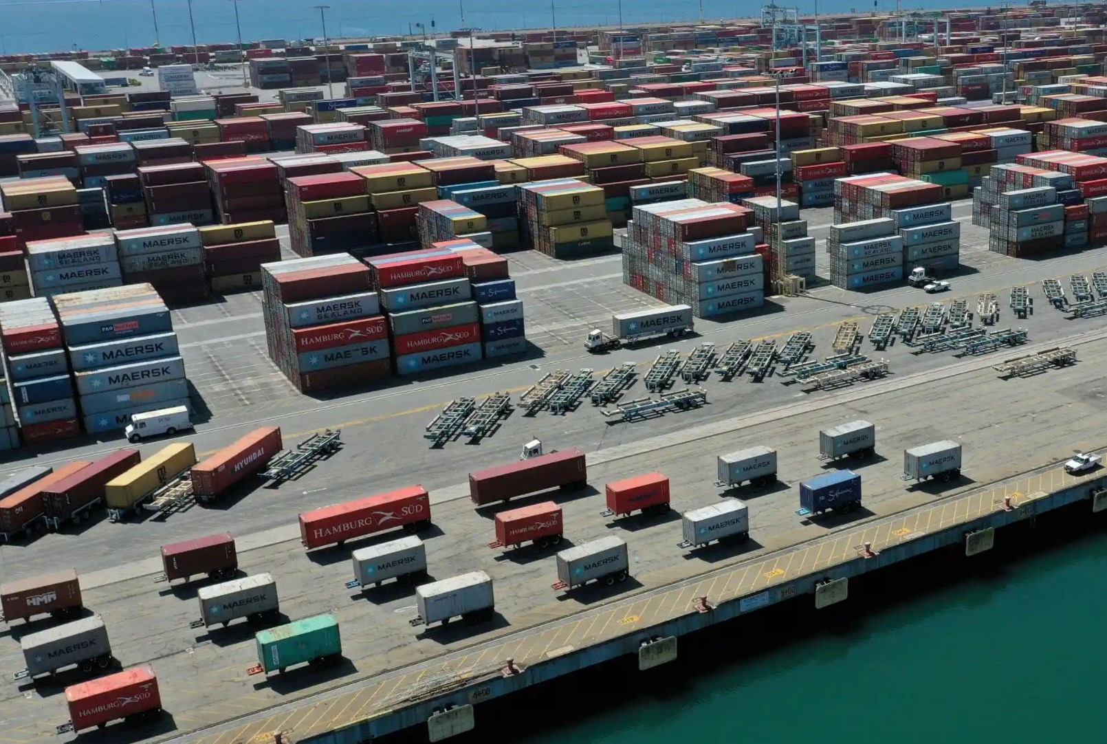 Containers are seen here waiting to go on a shipping dock in the port of Los Angeles, California. Photo Credit: Lucy Nicholson/Reuters