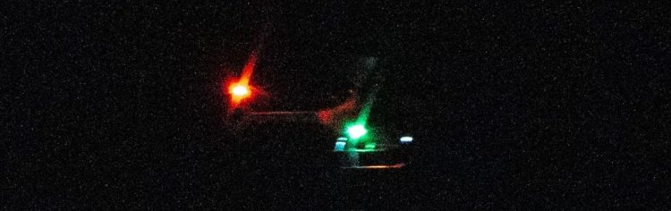 Other drones, however, are sporting red and green position lights. These lights are mandated by the FAA (a red light on the port side, a green light on the starboard, and a white light on the tail) and must be illuminated from sunset to sunrise. Call me nuts, but I doubt that aliens or Iranians give a damn about US Federal Aviation Administration rules.