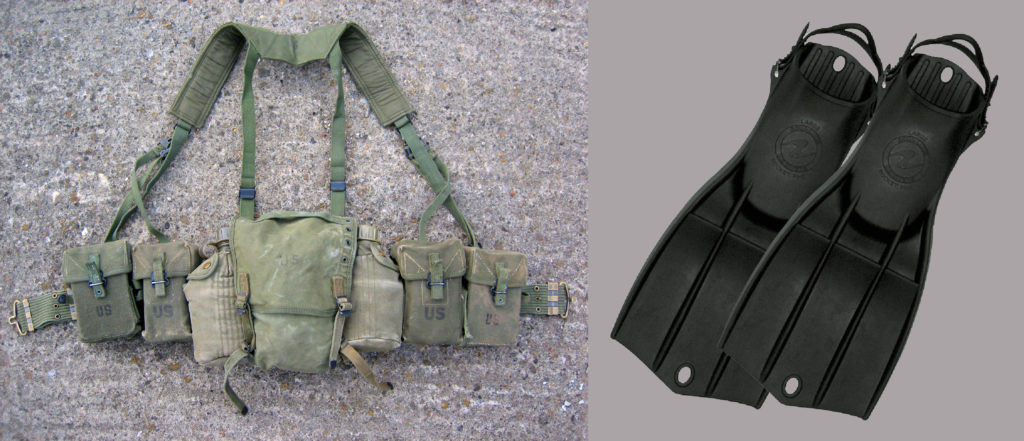 All the men had a blue chemlite on their collars marking their lives. We carried M-16 rifles and some essential Load Carrying/Bearing Equipment (LCE/LBE). We worn neoprene swim boots jammed into our Rocket Swim Fins to propel us under the power of our legs, already fatigued from the long surface swims of the past days. I felt sorry for the guys in between bouts of (somewhat) feeling sorry for myself.