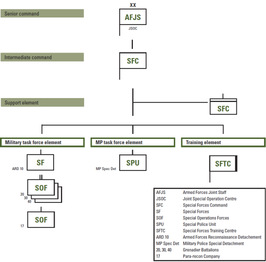 Since 2010, the Grenadier Command has been renamed the Special Forces Command (SFC), and now encompasses the most elite military units in the Swiss Armed Forces (similar to the U.S. Special Operations Command, just a lot smaller). In addition, its chain of command has been significantly shortened, as it was moved out of the Army and placed under the Armed Forces Joint Staff (C2 of all operations and missions conducted by Swiss Armed Forces, and directed by the chief of the army and the federal councilor in charge of the Department of Defense). Again, this is very similar to how the U.S. Special Operations Command is a unified combatant command under the direct leadership of the secretary of defense and the joint chiefs of staff, which are ultimately led by the commander-in-chief.