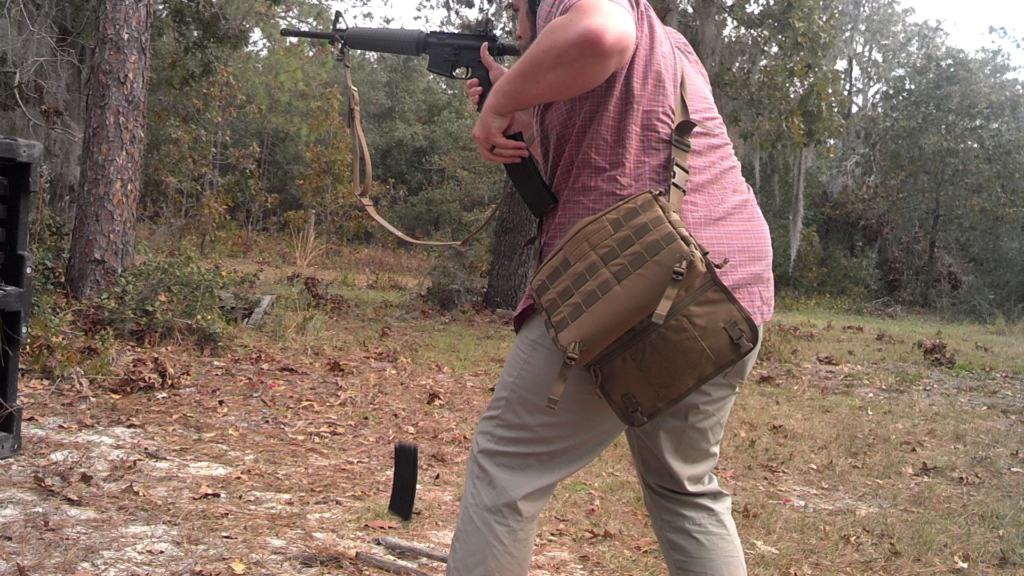 One of my complaints is that I wish the mouth of the bag opened a little wider. If the zipper went down an additional inch on each side the bag would be easier to use. As it stands it’s perfectly usable. The main problem I ran into was drawing pistol magazines. The magazine pouches are located on the far sides of the pouch, and were difficult to draw in a rush.