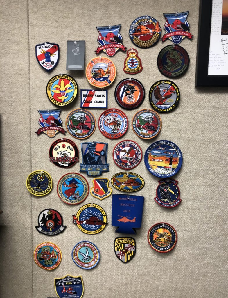 Captain Cooper’s shrine to Coast Guard aviation, designed by his son, is one of his favorite pieces in his office. Photo by Joseph Lafave for NEWSREP.