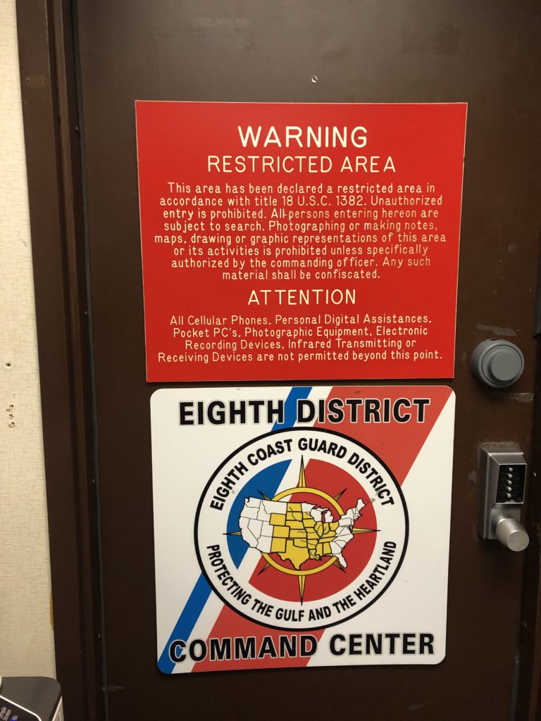 It’s busy but quiet in the command center, and everyone is in high spirits (despite not being paid). It’s staffed by a mix of civilian and military personnel—both officers and enlisted Coasties. The map of the district takes up the majority of one wall, a testament to the massive operation the command center manages on any given day. I had originally planned on learning more about what the Coast Guard does in the Gulf of Mexico, but the answer would require too much time to fit into one interview and be too comprehensive to cover in one article. District 8 is home to some of the most highly skilled and specialized Coasties in the country. Among these experts are men and women responsible for things like fishing management, search and rescue, law enforcement, environmental mitigation, navigation of and maintaining safe waterways, oil rigs and oil platforms, maritime infrastructure, emergency planning, economic protection measures, and intelligence analysis. Over the next several months I’ll be making more trips to New Orleans and exploring each of these missions, learning why they are important, and meeting the men and women responsible for undertaking them.