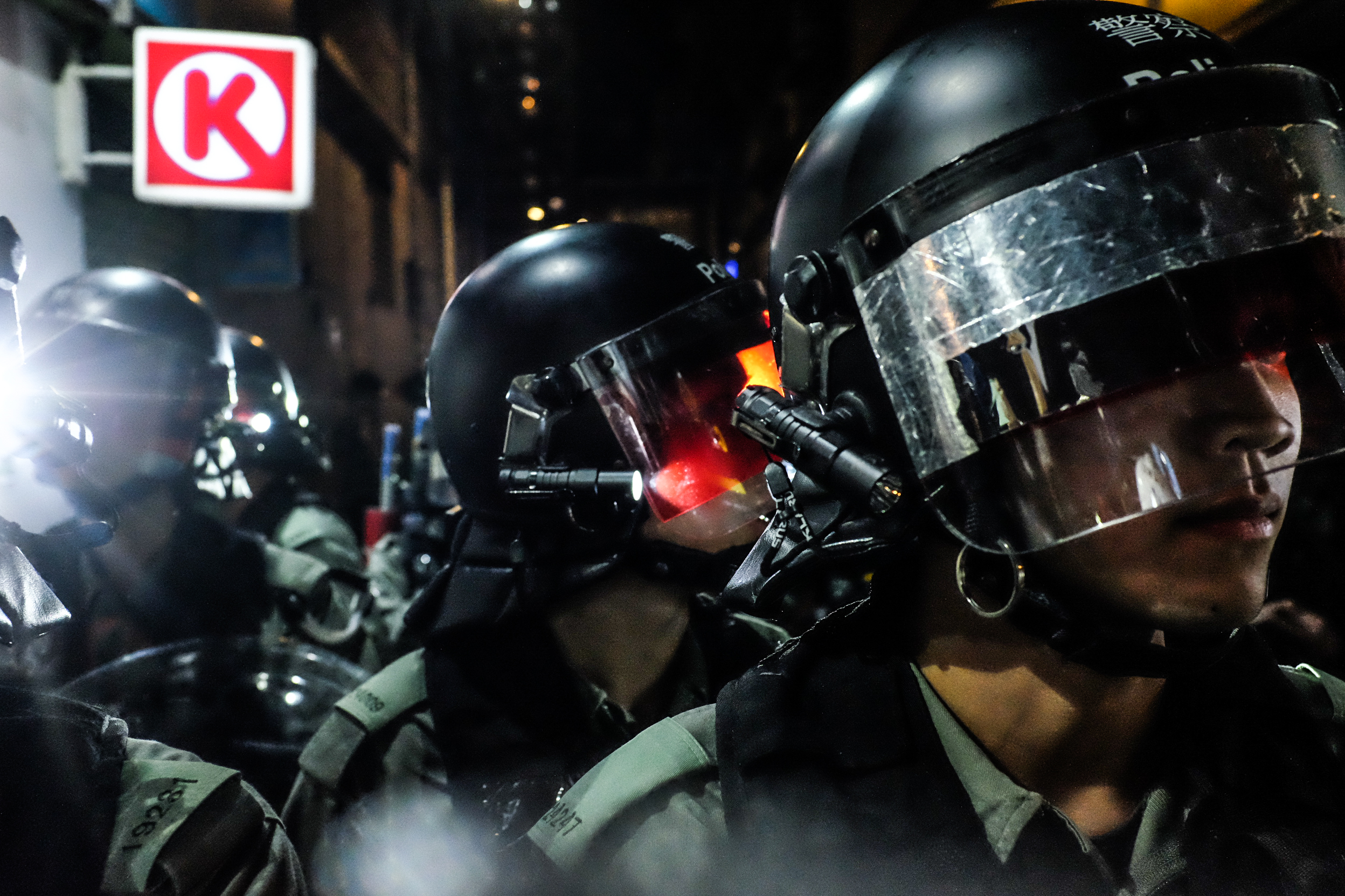 “Shield of Freedom” – On August 24th, protesters congregate at the Kowloon Bay police station following a police-approved protest. A skirmish between police and protesters ensues and many protesters are beaten and arrested by police.