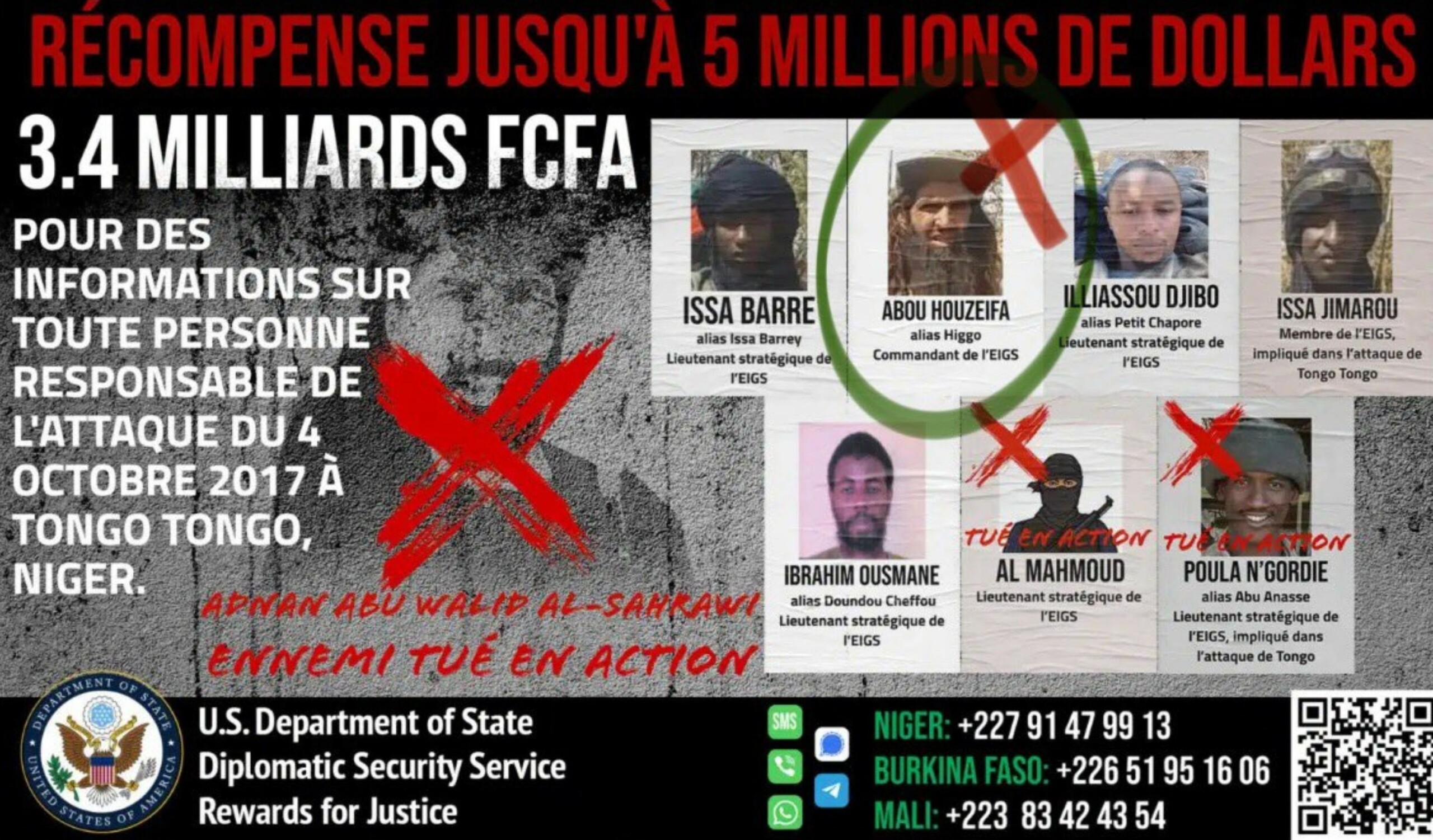 Higgo was recognized as the principal militant leader in the tri-border region connecting Mali, Niger, and Burkina Faso—a notorious hotbed for Islamist militant activity. He reportedly orchestrated the assault against American special forces in Tongo Tongo, Niger, on October 4, 2017, which resulted in the deaths of four Nigerian and four American soldiers as they were returning to their base from a reconnaissance mission.