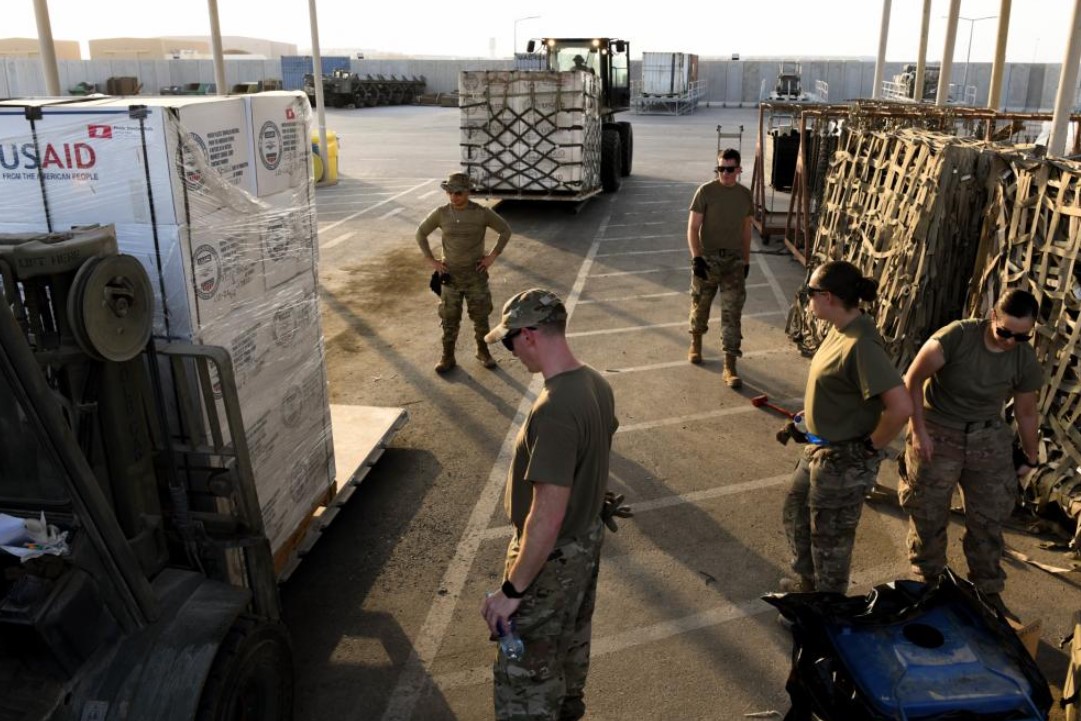 The 380th Expeditionary Logistics Readiness Squadron (ELRS) Airmen Provide Support for USAID Food Relief Donation to Pakistan