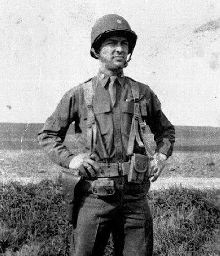 Brigadier-General Albin Irzyk in his combat kit, 3rd Army style, necktie and buckled helmet.
