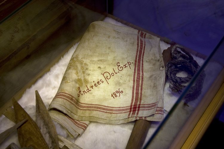 A recovered tea-towel from the doomed Andrée Expedition. (WikiMedia Commons)