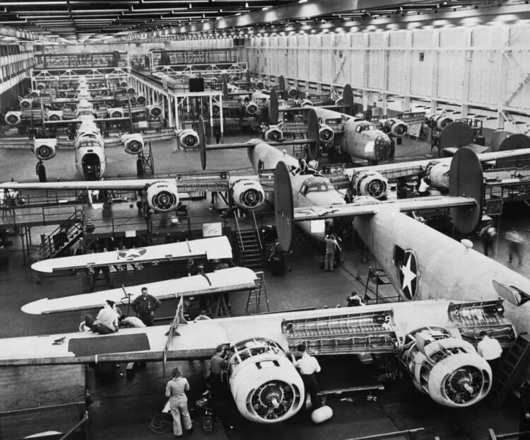 Building B-24 Liberator bombers at Ford's Willow Run plant in 1943. AP Photo