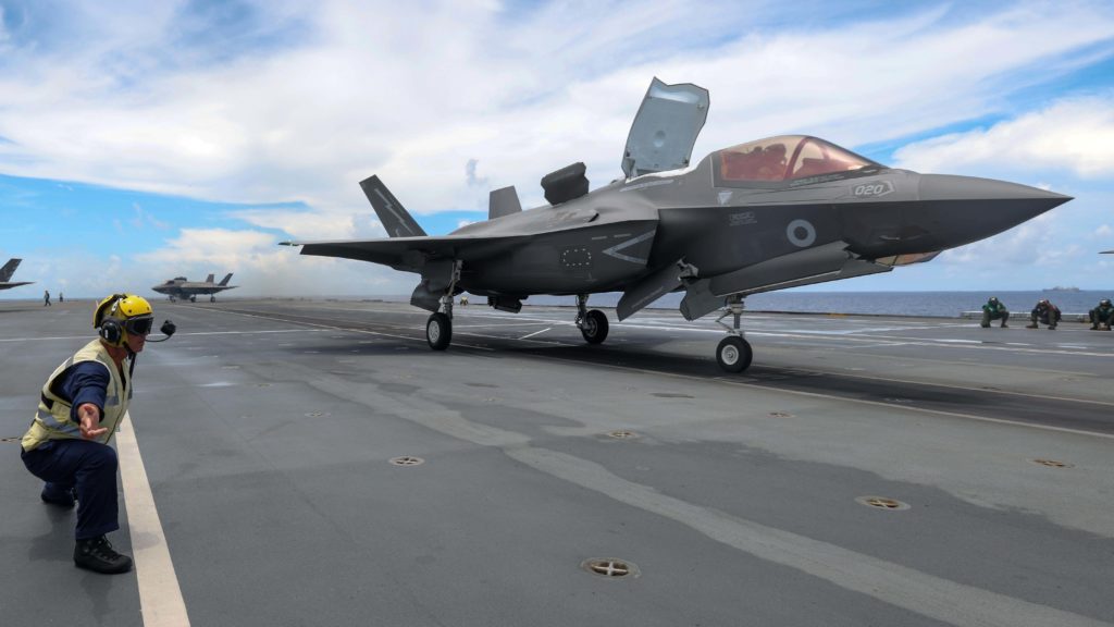 An American F-35B Lightning Joint Strike Fighter during operations on the HMS Queen Elizabeth. (Royal Navy)