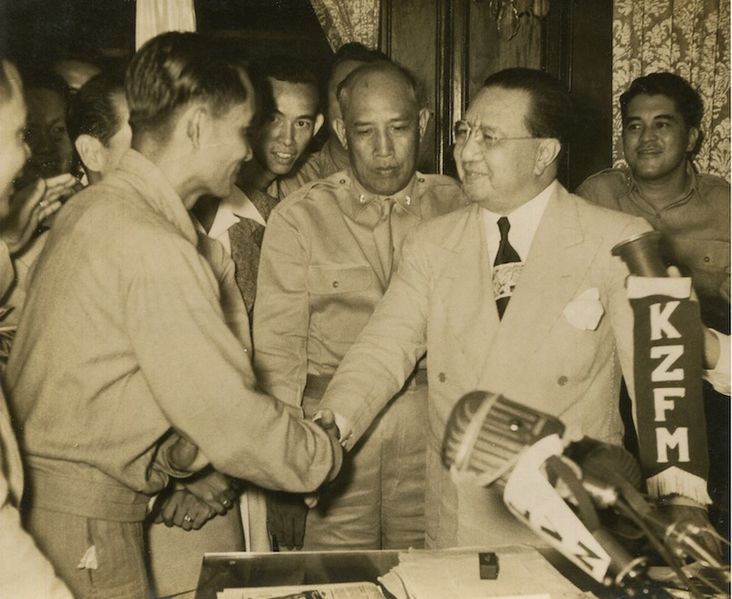 President Quirino shaking hands with Hukbalahap leader Luis Taruc. (Malacañang Palace, Public domain, via Wikimedia Commons)