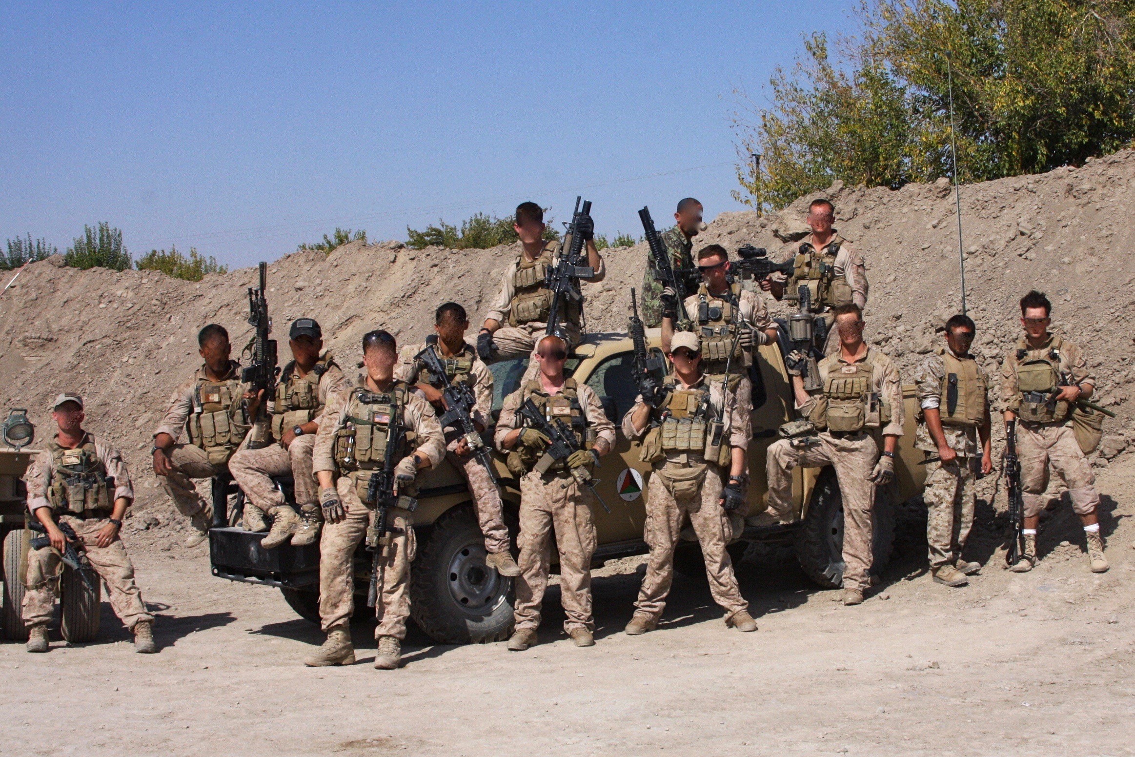My job was primarily to help with searches, site exploitation, and tactical questioning, among other things with 3rd Recon during the deployment. In regards to the ambush, it was like I was in a movie. I was with 2nd Platoon when we began taking fire, and I was stuck in the middle of a road taking cover inside a large pothole with bullets cracking all around me. Tree branches were falling off of the trees behind me due to the volume of fire. Two Recon Marines bravely stood exposed to the fire from their waist up and returned fire long enough for me to reach proper cover – but not before I went through a magazine and a half of my own through well-aimed shots. We had just witnessed the mass exodus of civilians from the buildings we were taking fire from, but it still took an eternity for our fire support to materialize because Homiak was worried about killing civilians we knew weren’t even there.