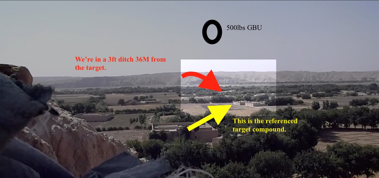 For even an 81 mm mortar, 36 meters from friendly forces is incredibly close and dangerous, but when you start talking about HIMARS or a GBU – just the pressure and blast waves alone at that close range would be debilitating. It makes no sense in this particular situation to go straight to a GBU-54 when a more appropriately sized ordnance could have been used to break contact and allow friendly troops to move. The magnitude of the explosive power used is just shocking when thinking that an extra meter could have meant the death of these Marines. I could never imagine using something that large and that close to friendly forces in a situation like this unless it was the absolute last resort, which in this case it was not.