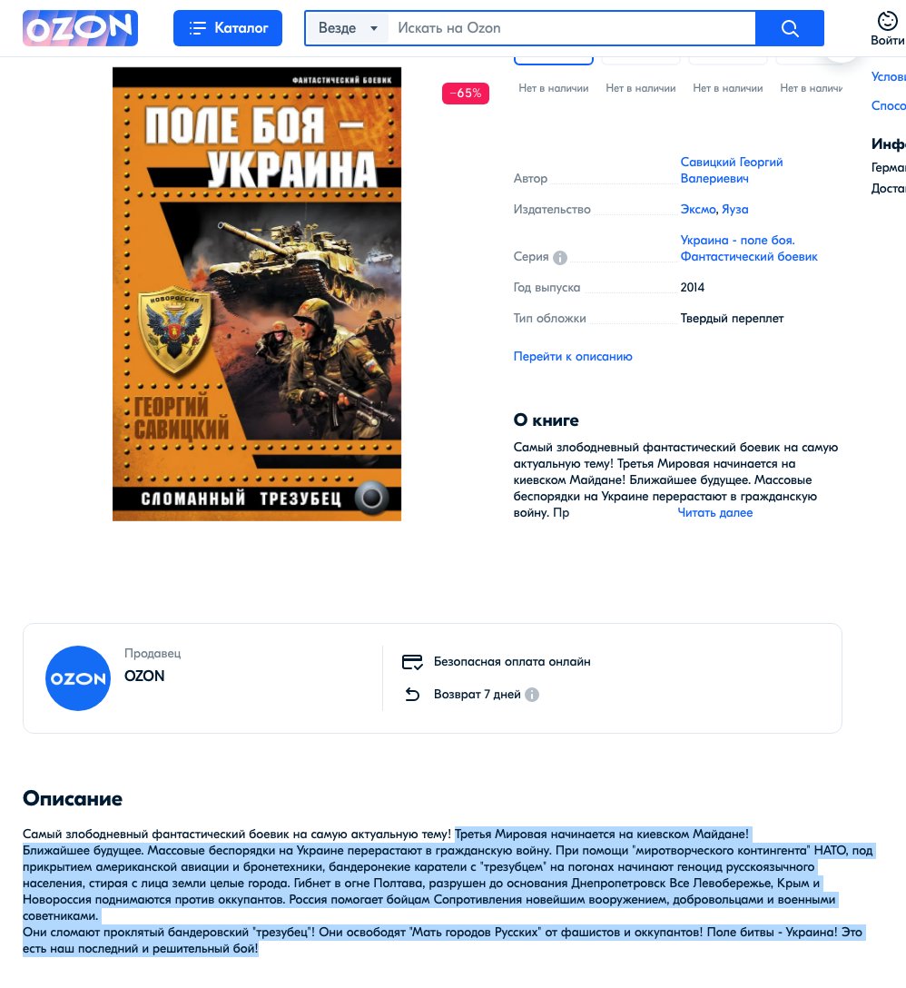 This was the prelude. Soon after, Kremlin has started to publish what they called “battle fantastic”. Mass-produced low-quality books about Russian military superiority in all possible conflicts. The whole book series appeared. Here: “Battlefield Ukraine series” “Ukraine on Fire”