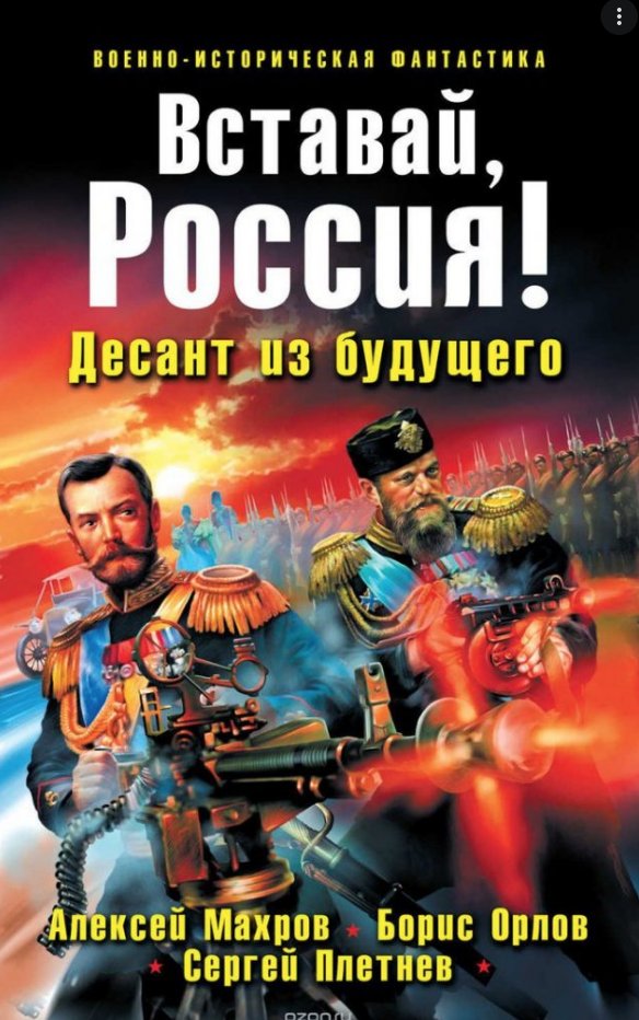 Let us start with easy reading “Tsar from the future”: a guy wakes up in the body of Russian Nicolas II emperor, prevents the Russian revolution, defeats Great Britain, and conquers Istanbul with modern weapons. “Russia Arise!” Popadantsy in the bodies of Nicolas II and Alexander III.
