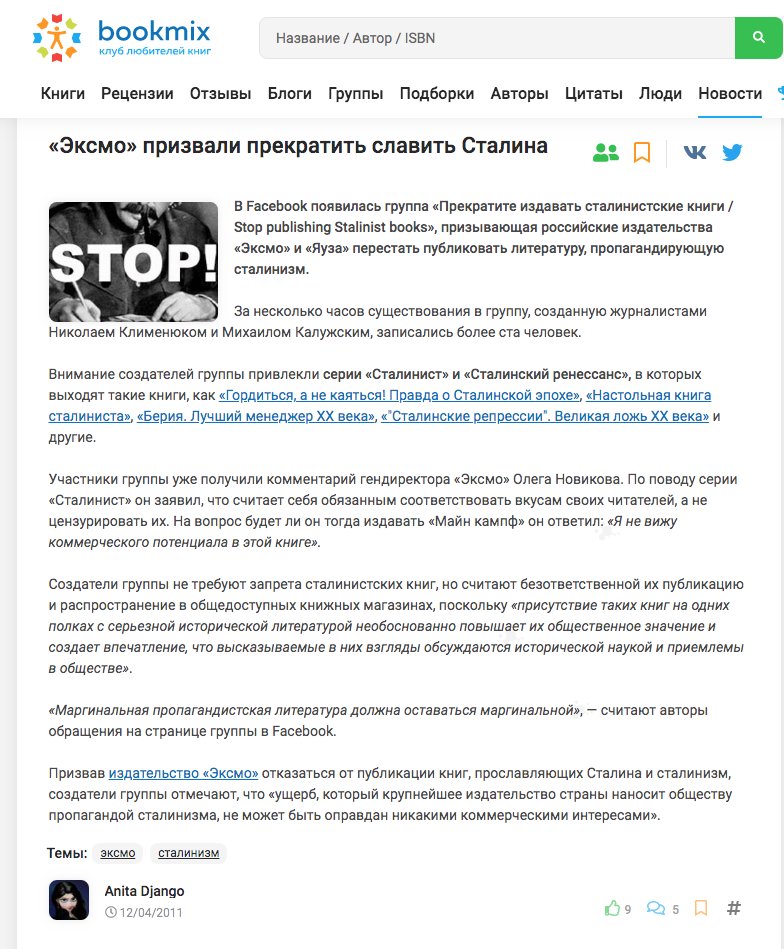 The wave of Stalinist books was so massive, that in 2011 a grass-root initiative “Stop Publishing Stalinists Books” emerged with a call for publishing houses to stop. It was ignored of course.