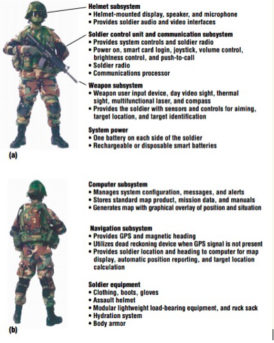 A helmet mounted display to provide real-time data and video aligned with the soldiers’ weapon system, which held a corresponding video camera, laser range finder, digital compass, GPS, night and thermal vision within a command integrated heads up display.