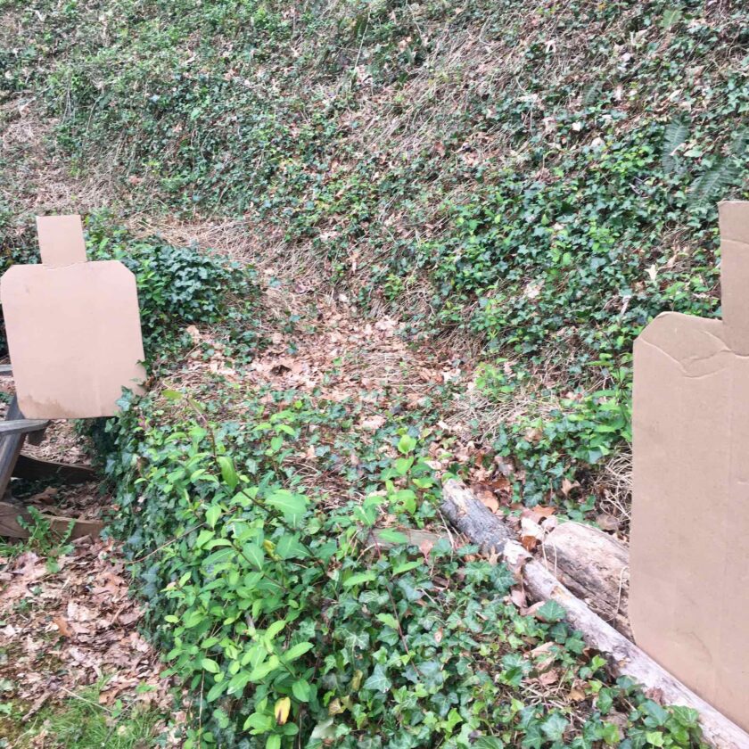 When I dry practice outside I am in proximity to my house. I can have the house behind me or (more likely) beside me. This gives me a corner to work around from two directions. There are three basic places I can be when dry practicing outside, so let’s take a look at them.