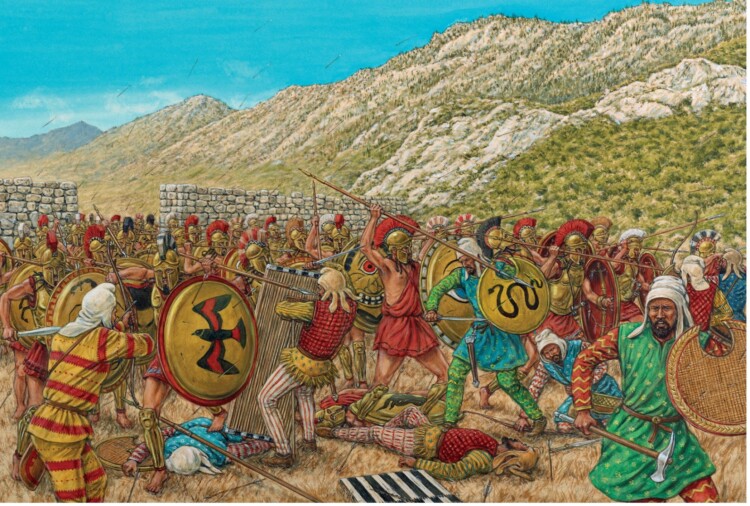 Various Greek-city state armies storming a Persian encampment via Pinterest