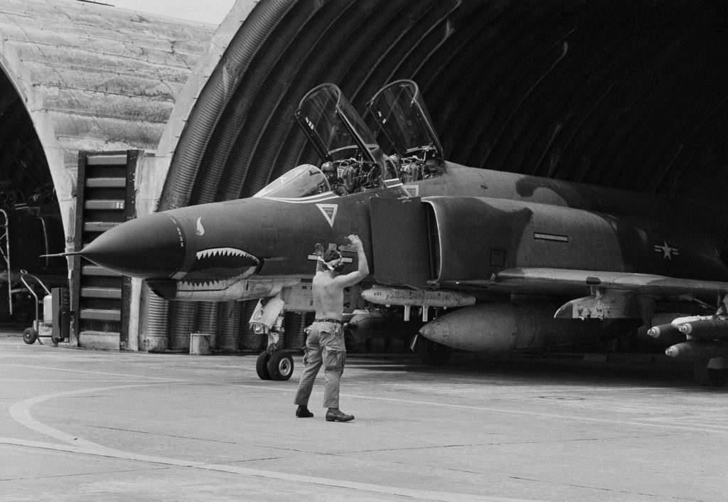 A U.S. Air Force F-4 Phantom jet is guided out of its revetment, April 23, 1972 at Da Nang, South Vietnam, at the start of another bombing mission over the DMZ area and North Vietnam. | AP Photo