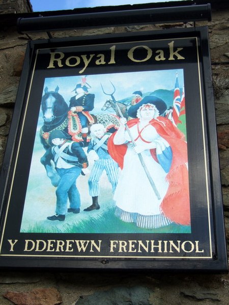 Jemima’s triumph The pub sign at the Royal Oak depicts the (possibly apocryphal) single-handed capture by the local cobbler Jemima Nicholas of several French soldiers during their abortive invasion in 1797. (ceridwen / Jemima’s triumph / CC BY-SA 2.0)