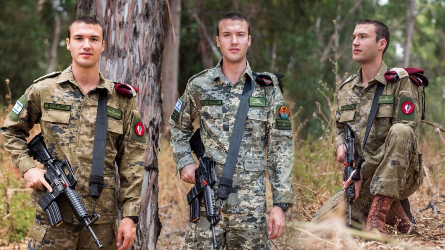 The pictures above show a soldier wearing two different patterns of the new camouflage. The pattern on the left and right show “Duvdevans” (SF unit) insignia while the pattern shown in the center includes Tanker insignia. It is not clear which pattern will be fielded for what purpose but the IDF claims both performed well in field tests.