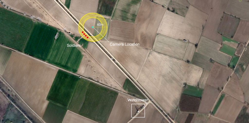 In order to circumvent this weak point, the investigative team tries to determine if any live shots were fired on that day and from which side of the border. To prove the first point, they present an audio forensic analysis of video footage in which successive shots are heard, shots that, according to an expert who helped the investigators, are clearly from live ammunition and not blanks. Based on the expert’s opinion that the rounds were fired from a distance of 40-60 meters away from the point that the camera was standing, the investigators present a scene that seems to show a team of Greek soldiers 50 meters away. So they conclude that “it is highly probable that shots were fired from the Greek side.”
