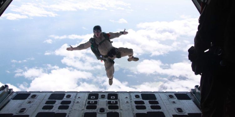 A Marine with 2nd Marine Special Operations Battalion jumps from a KC-130J Hercules over North Carolina, Sept. 12, 2012. US Marine Corps/Lance Cpl. Samantha H. Arrington