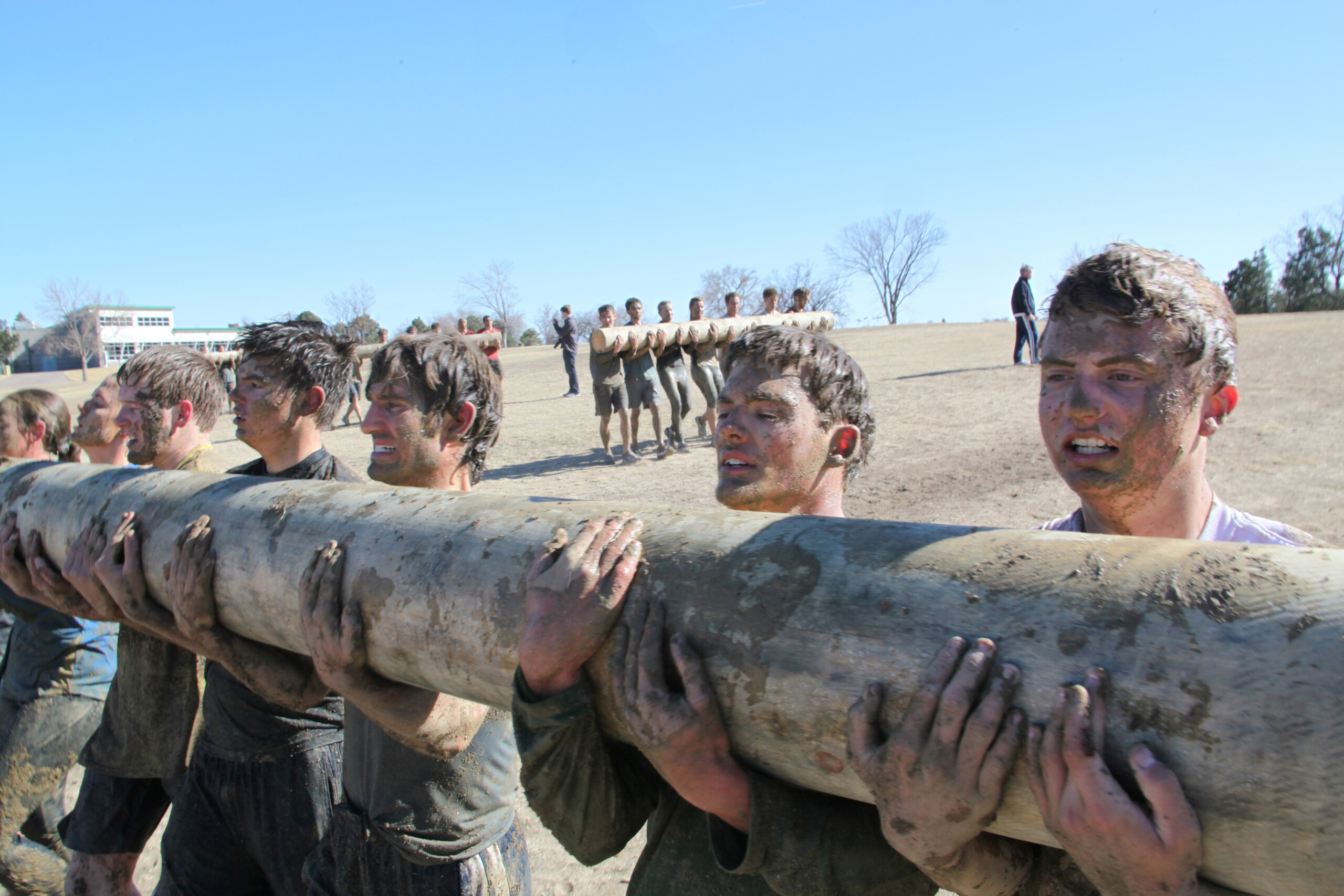 United States Olympic Sailing Team members carry a 220-pound log during Navy SEAL “mental toughness” training near the Olympic Training Center in Colorado Springs, Col., in 2012. (Wikimedia Commons)