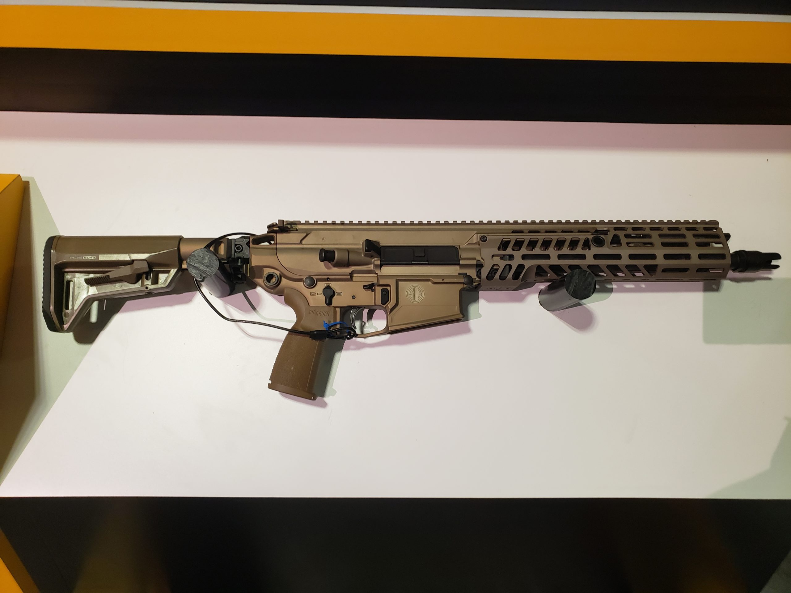 The new rifle is a SIG SAUR design that will be made under license here in the US and uses the 6,8mm family of ammunition which tends to outperform the 5.56mm round in every respect.
