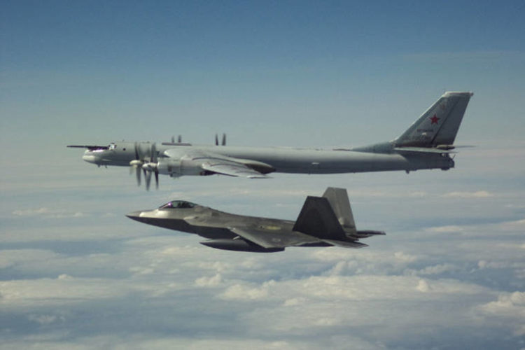 F-22 Raptor intercepting a Russian TU-95 Bear Bomber. (NORAD)